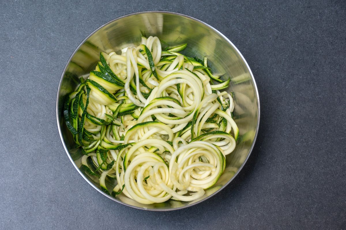 - Adicione as fatias de abobrinha à tigela e misture bem para que todas as fatias fiquem bem cobertas com o molho;