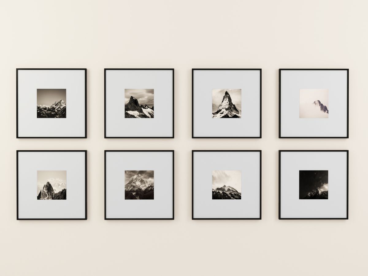 Ao escolher quadros e outras peças de arte, prefira molduras discretas e neutras, como madeira natural ou preto, e opte por composições bem planejadas para dar um toque dinâmico e interessante às paredes.