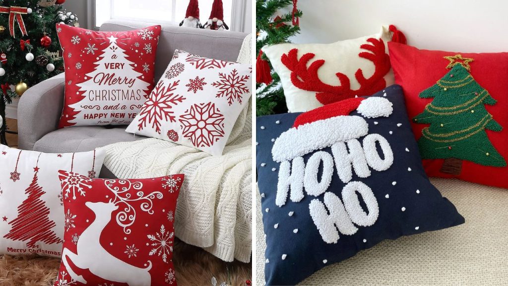 Com materiais duráveis, essas almofadas podem ser guardadas e reutilizadas em outros anos, garantindo uma solução econômica e sustentável para a decoração natalina.
