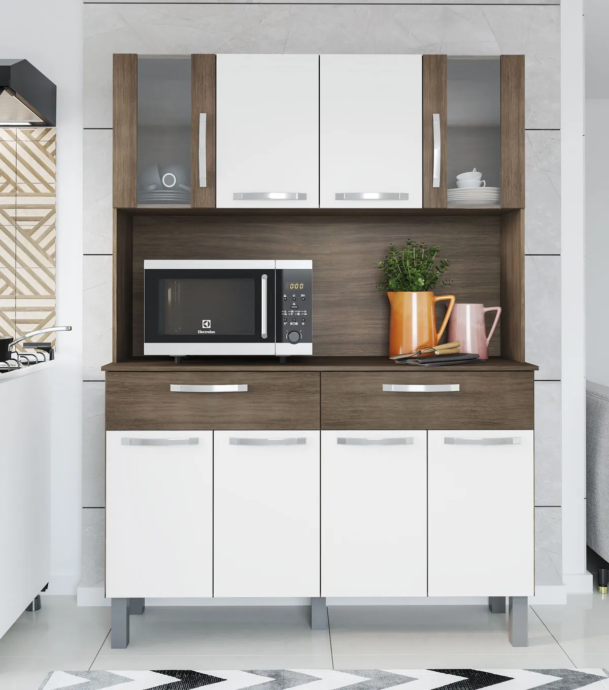 O armário de cozinha é um aliado na organização desse espaço! Ele permite armazenar e manter escondidos alimentos e utensílios domésticos.