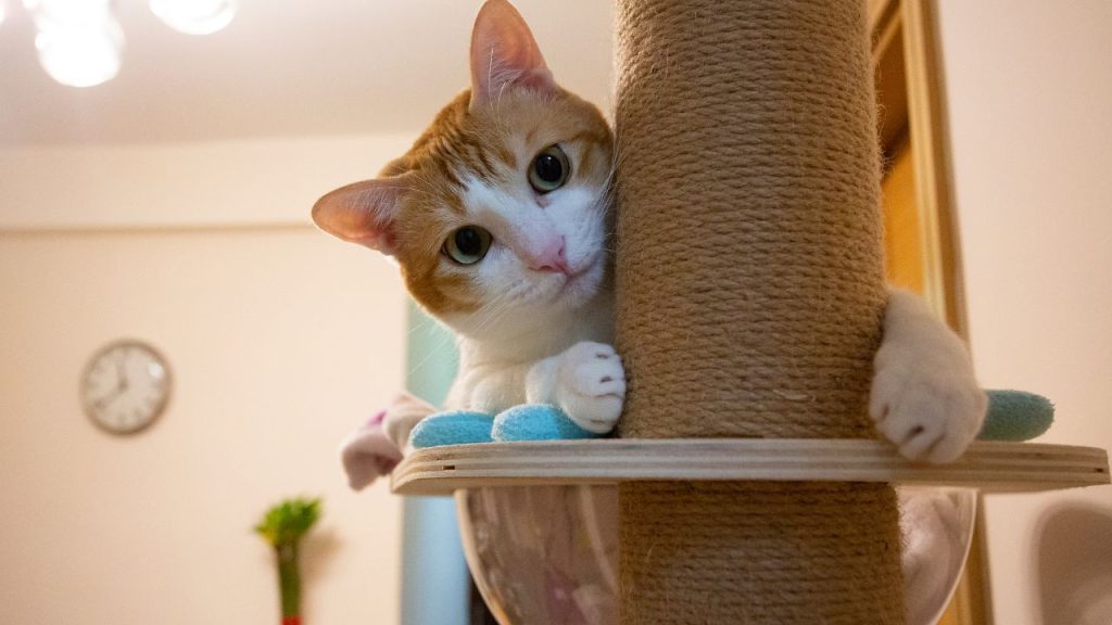 Uma alternativa clássica é revestir um poste com carpete e prendê-lo a uma base de madeira. A superfície áspera do carpete é perfeita para o gato afiar as garras, e o material costuma ter boa resistência ao uso contínuo.