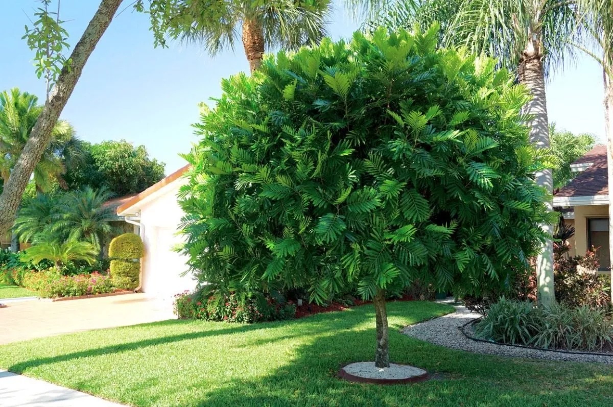 Originária da Índia e do Sri Lanka, esta árvore pode crescer até 7 metros de altura, e encanta com suas folhas compostas por pequenas folhinhas verdes.
