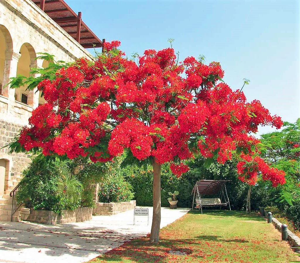 Existe também a Flamboyant-mirim, que pode atingir de 3 a 4 metros de altura e cresce rapidamente. Suas flores podem apresentar várias cores, como vermelho, amarelo e rosa.