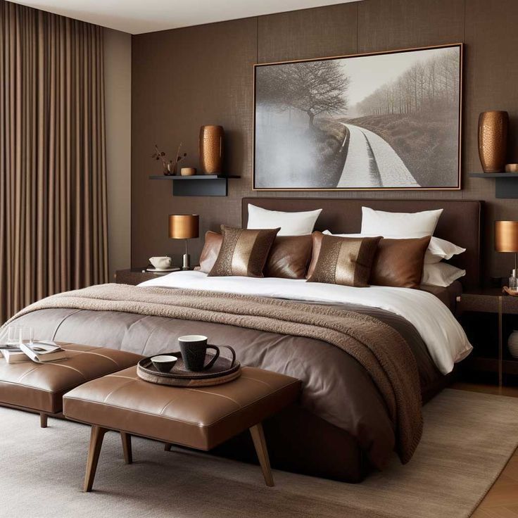 Esse marrom quente e suave, é perfeito para quem busca um quarto acolhedor e sofisticado, e se encaixa tanto em decorações rústicas quanto em ambientes modernos, dependendo das combinações escolhidas.