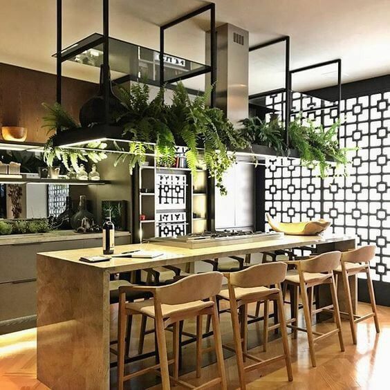 A ilha central é uma das disposições mais populares. Ela permite o uso do balcão como espaço de preparo de alimentos, área para refeições rápidas e ponto de interação social.