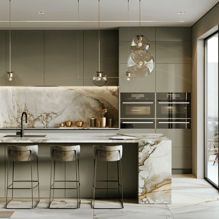 Outra tendência interessante é o uso de mármore com veios bem definidos e contrastantes. Esses veios podem ser pretos, dourados ou até verdes, adicionando um elemento de destaque ao balcão.