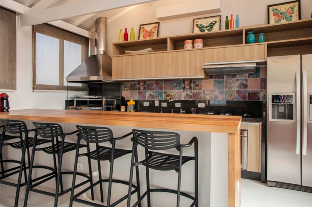 Bancadas com altura superior demandam a combinação com banquetas de altura ajustável – uma preferência em varandas gourmet e cozinhas integradas.