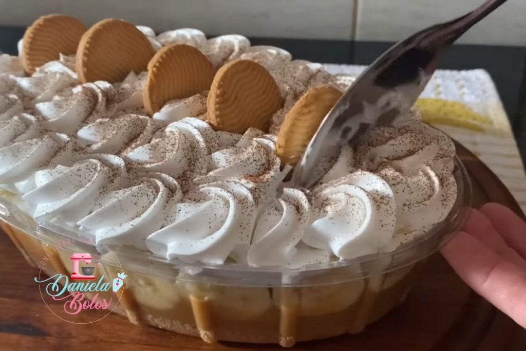 A banoffee é uma sobremesa prática e que funciona perfeitamente para servir nas reuniões natalinas. O prato é marcado pelas camadas irresistíveis de doce de leite, banana e chantilly, conquistando tanto pelo visual quanto pelo sabor.