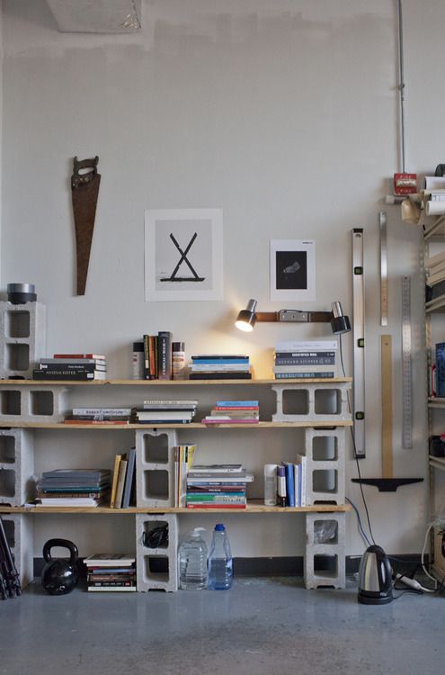 Crie estantes ou prateleiras empilhando blocos de concreto. Você pode adicionar tábuas de madeira, vidro ou até mesmo pedaços de pedra como prateleiras entre os blocos.