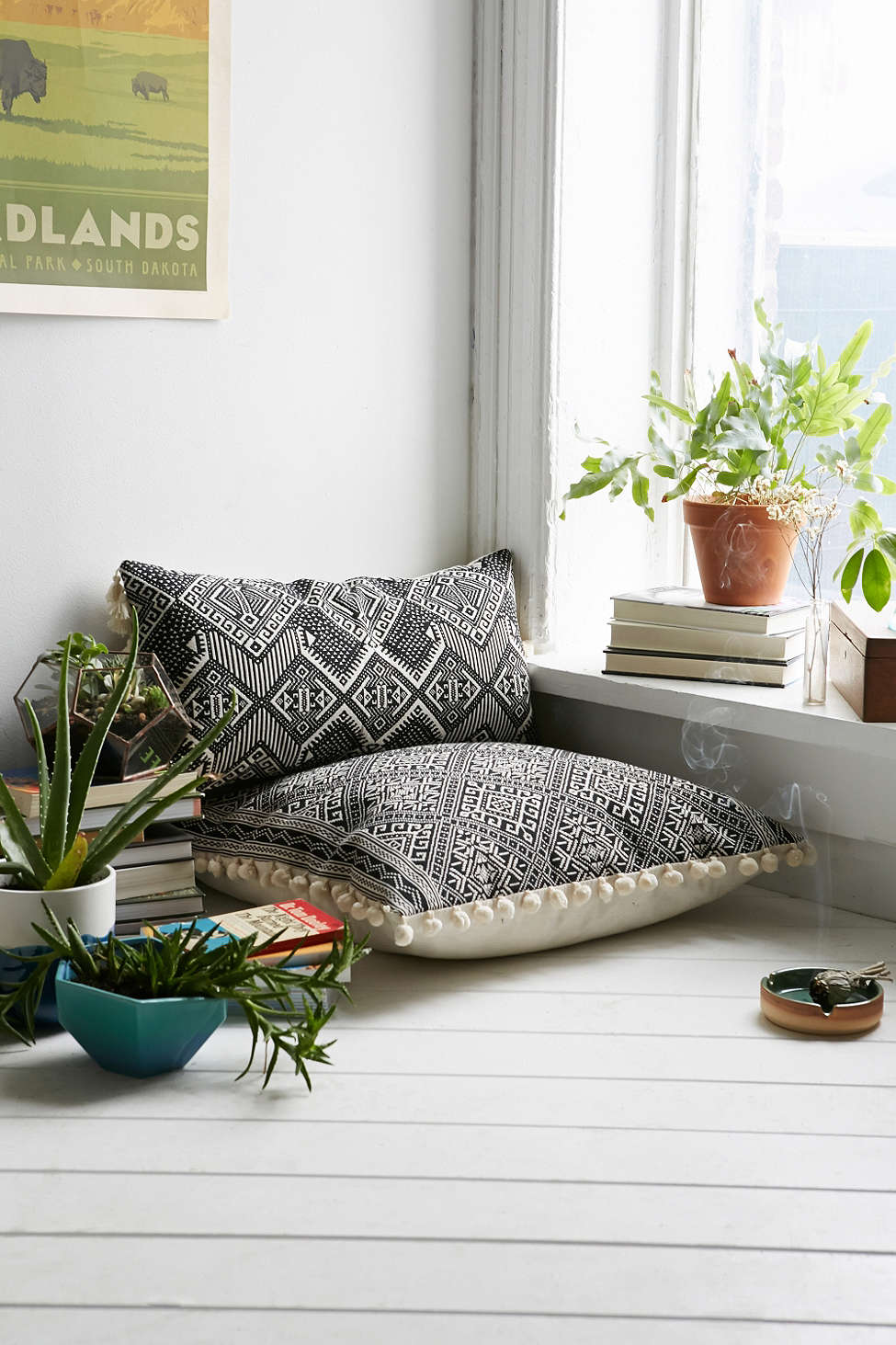 Depois que terminar esse período de meditação, você pode empilhar as almofadas no canto ou ainda usá-las como itens decorativos sobre o tapete mesmo. Ainda, guarde tudo em um cesto feito de materiais naturais e deixe-o à vista.