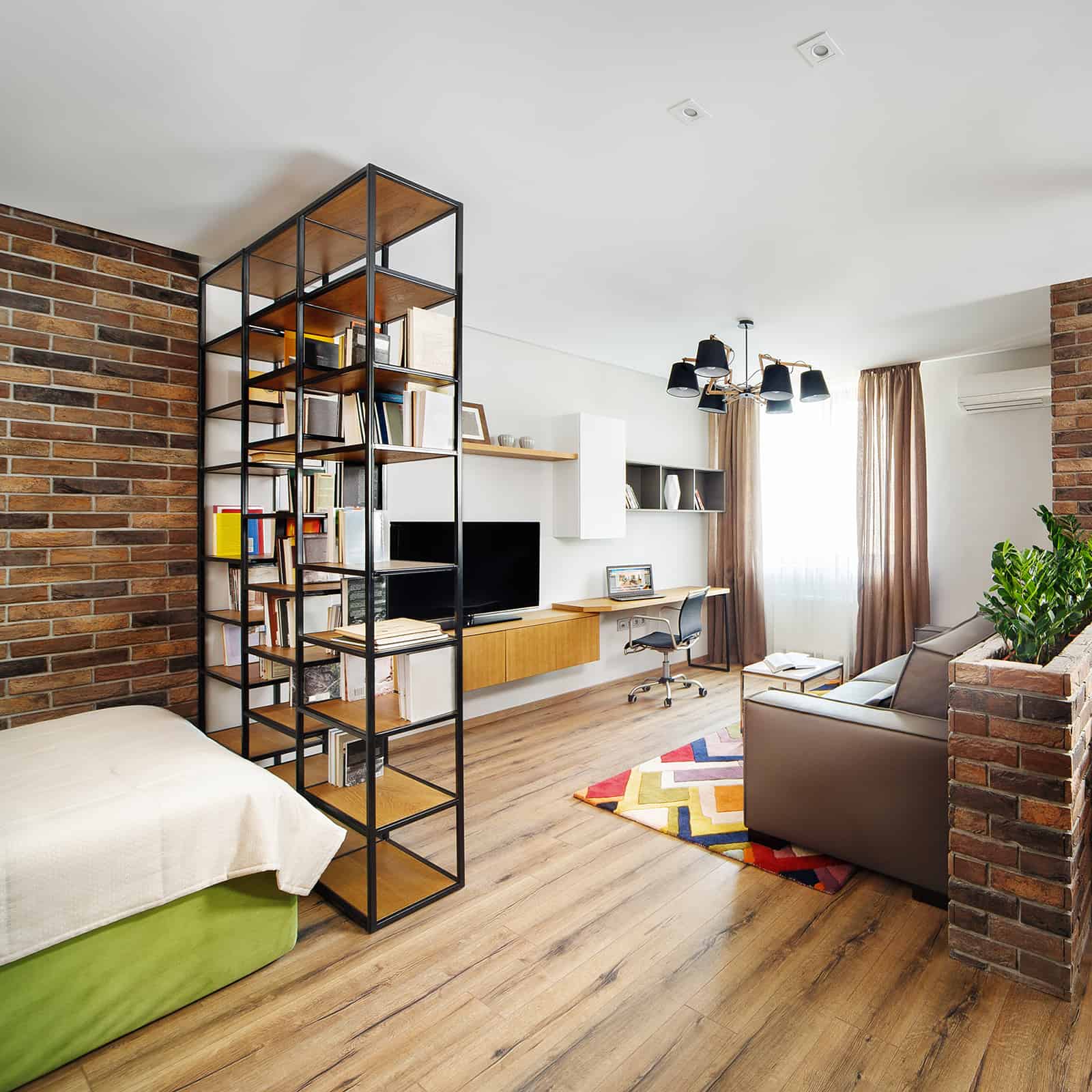 Pode até ser um desafio dividir os ambientes quando se mora em um local pequeno, mas alguns truques facilitam a tarefa, como o uso de estantes independentes, cortinas, telas, entre outros.