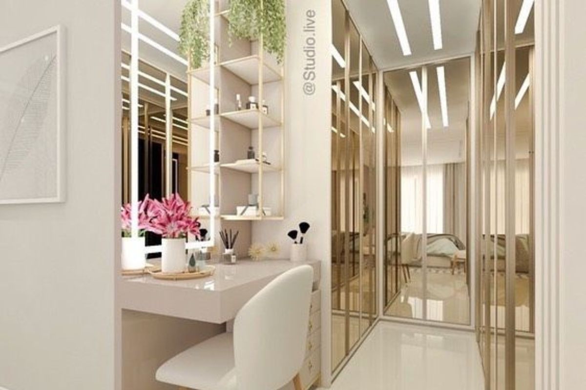 Se houver janela no closet, também pode ser interessante posicionar um espelho de rosto que fique de costas para ela, para que você possa usar a luminosidade para criar a maquiagem do dia.