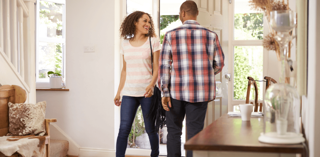 homem recebendo mulher na entrada de casa