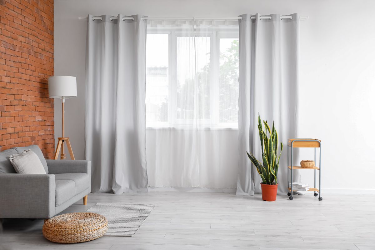 Para espaços mais escuros, o ideal são cortinas de tons claros, como branco, off-white ou tons pastéis, que maximizam a luz disponível.