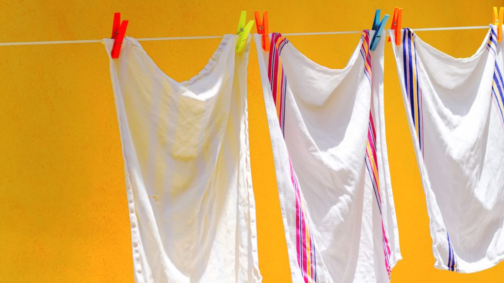Um detalhe importante: a água sanitária tem poder alvejante, portanto, não use essa dica em panos com detalhes coloridos, como tecidos e estampas. Eles poderão desbotar!