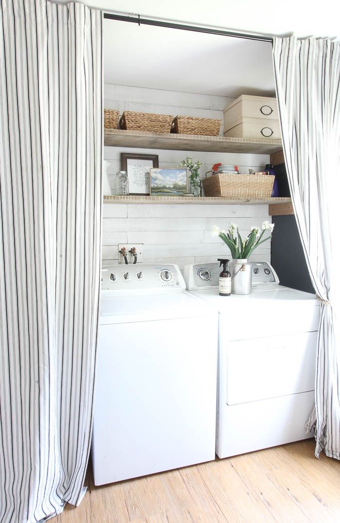 Quer esconder a área de serviço, mas está com o orçamento reduzido, sem conseguir investir em portas ou qualquer solução com o preço um pouco elevado? Neste caso, há uma alternativa simples e econômica: é só usar cortinas!
