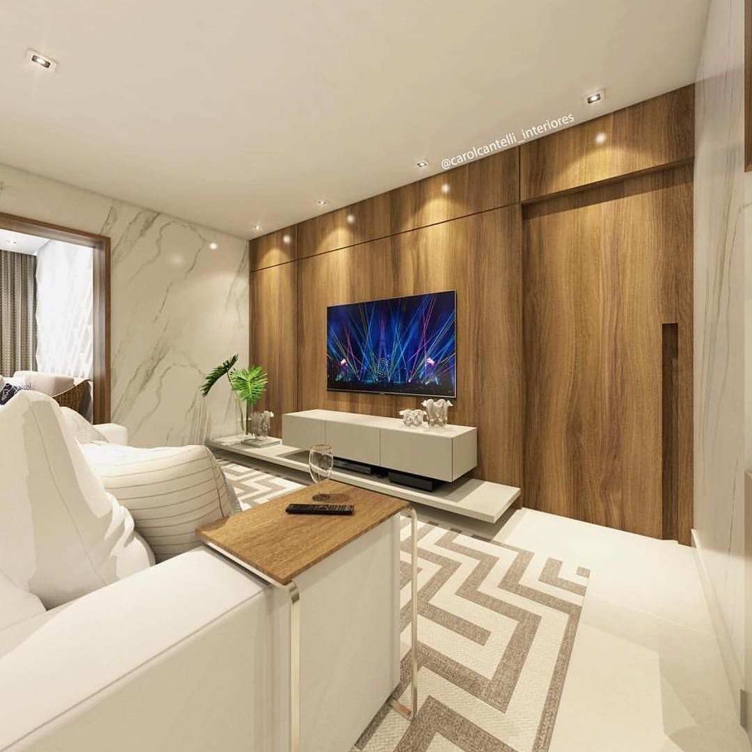 Tendência entre os arquitetos de interiores. A porta de correr oculta pode ser feita da mesma cor da parede ou utilizando o painel de TV se estendo até a porta de correr, de forma que sempre pareça ser uma coisa só.