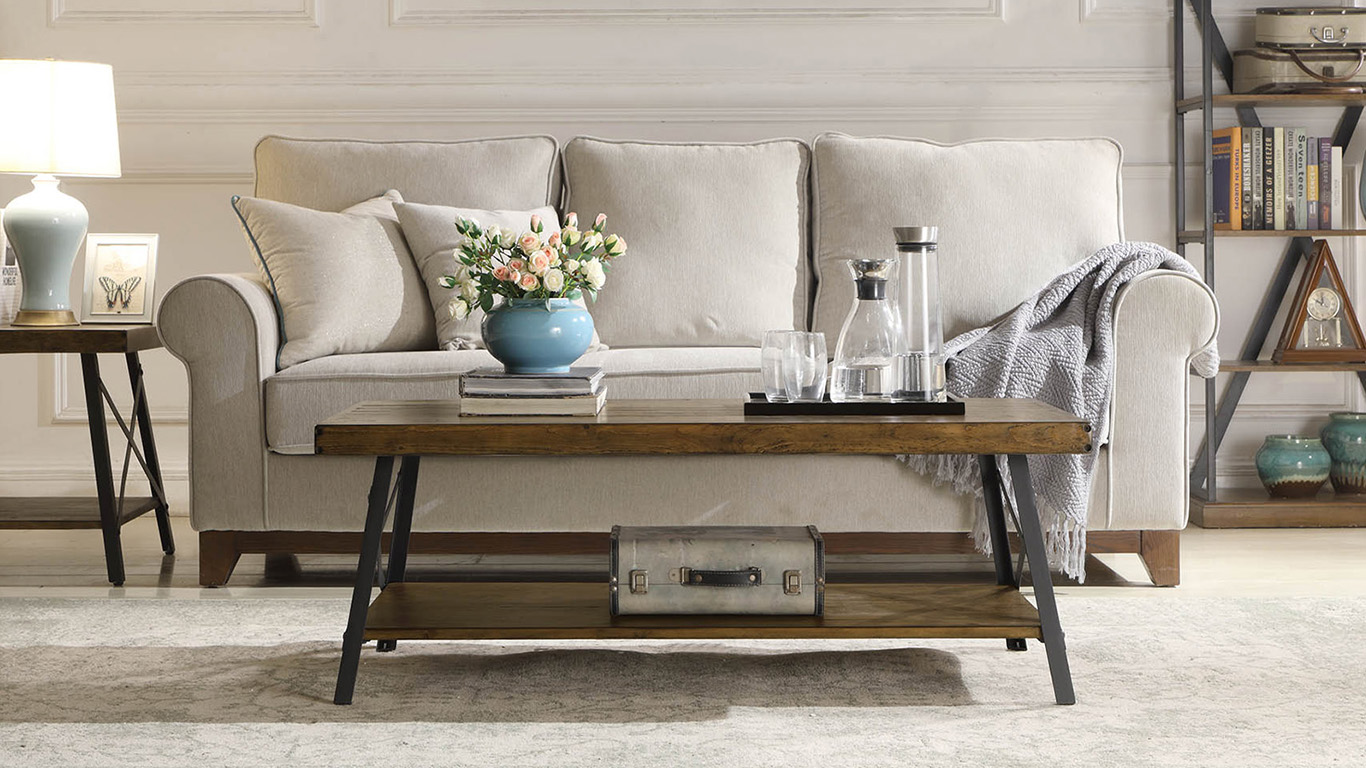 Logo, selecione uma mesa de centro que não ultrapasse dois terços do comprimento total do seu sofá. Também, lembre-se de deixar espaço suficiente ao redor da mesinha para as pernas.