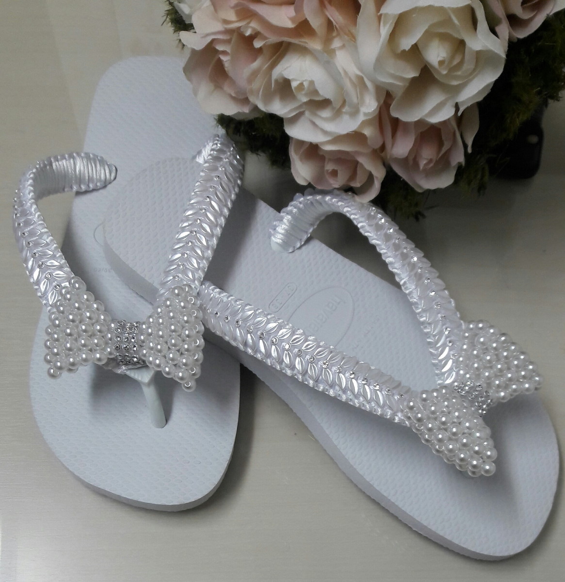 Os chinelos com pérolas são clássicos do artesanato e costumam agradar bastante desde que tem estilo básico até o clássico. Também pode ser uma alternativa de lembrancinha de casamento, caso tenha interesse em fazer para venda.