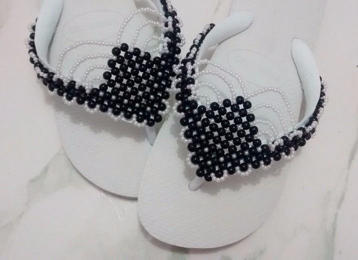 Como fazer chinelos bordados com pérolas
