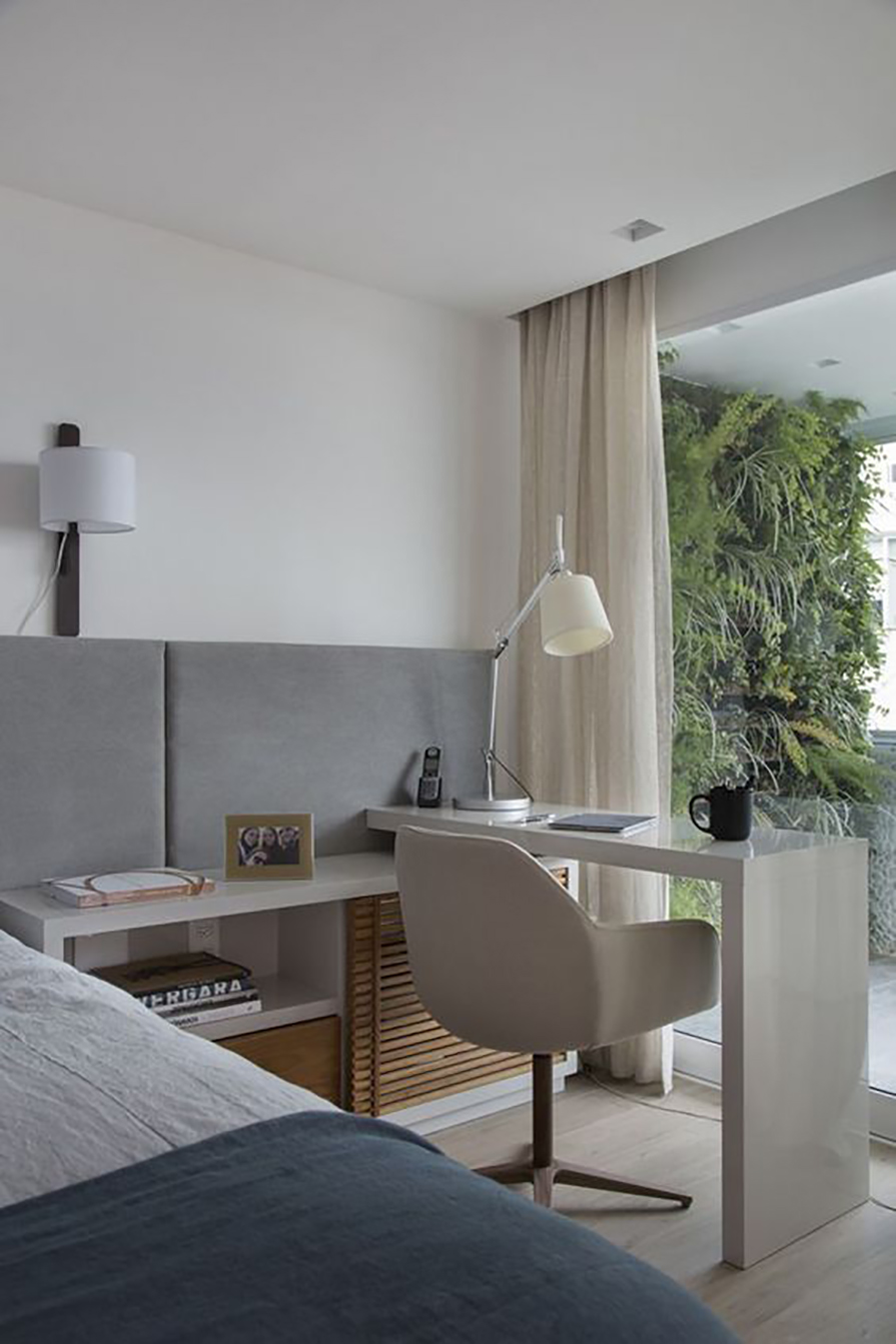 Na realidade, entre os cômodos da casa que mais combina com o home office – quando você não tem um ambiente próprio para escritório – é o quarto.