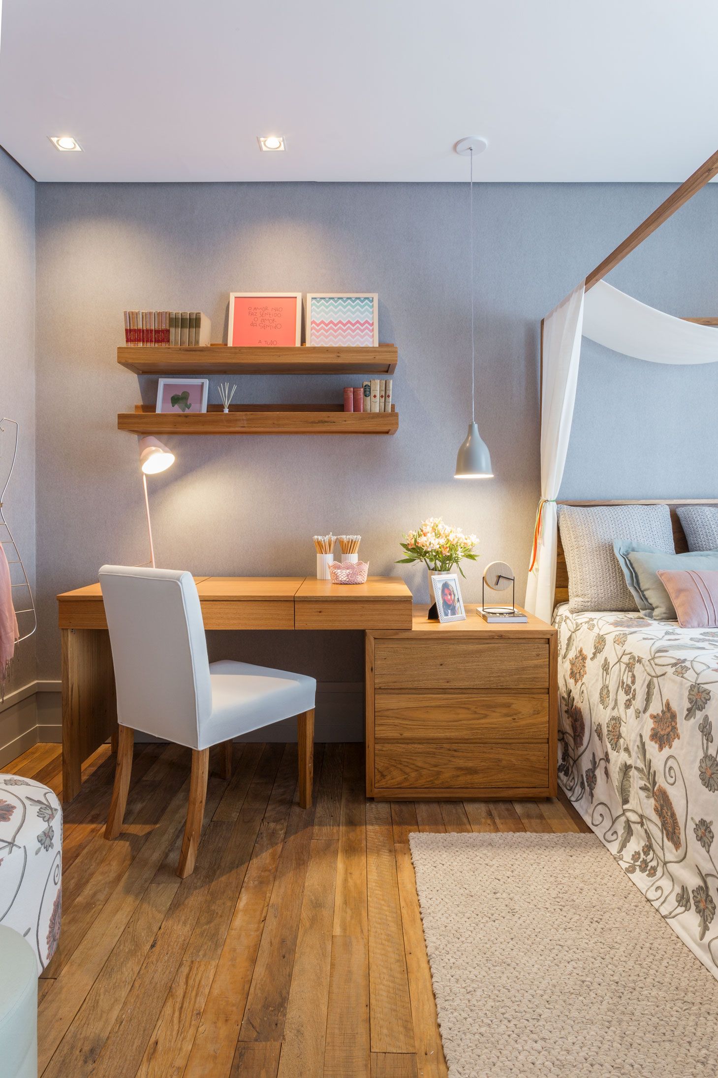 Como não pode ser esquecido, a decoração do quarto, mesmo com um home office instalado nele, merece atenção!