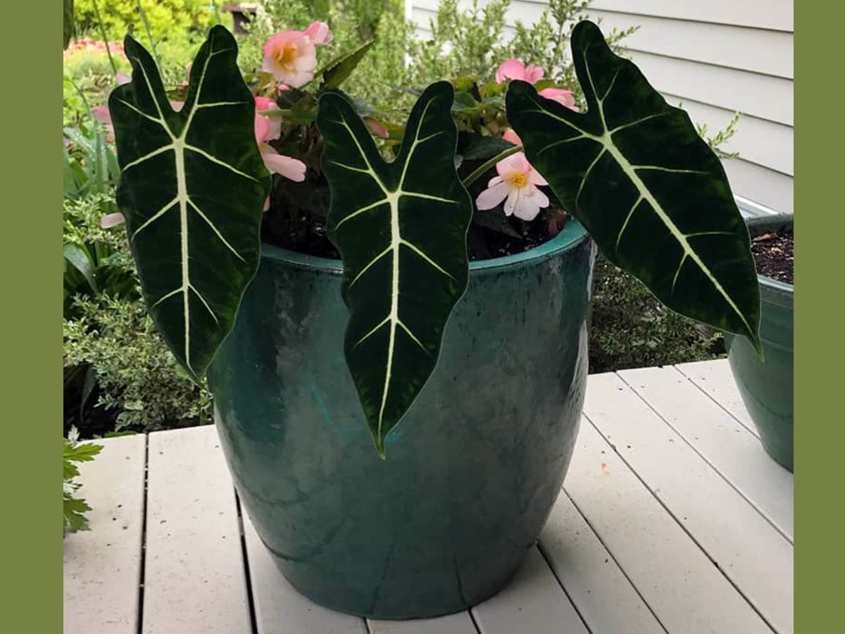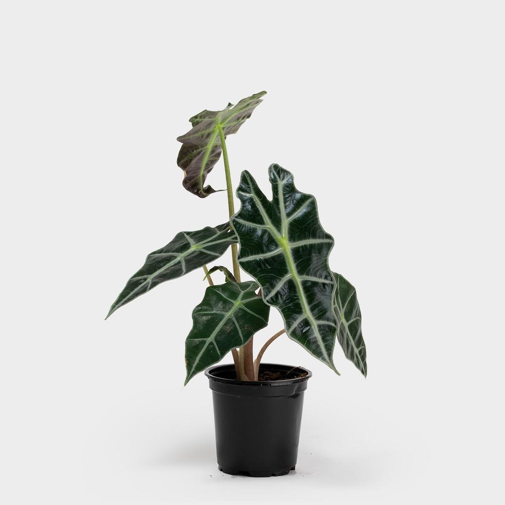 A alocásia é uma planta tropical com folhas de tonalidade verde-escura e nervuras claras. São serrilhadas e, dependendo do tipo, podem ter folha verde-púrpura.