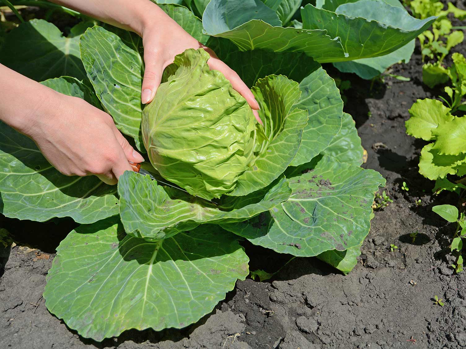 Para identificar se está no momento adequado de colheita, verifique se a cabeça do alimento está com consistência firme. Quando as folhas do caule começam a enrolar o repolho, ele está no ponto ideal de colheita.