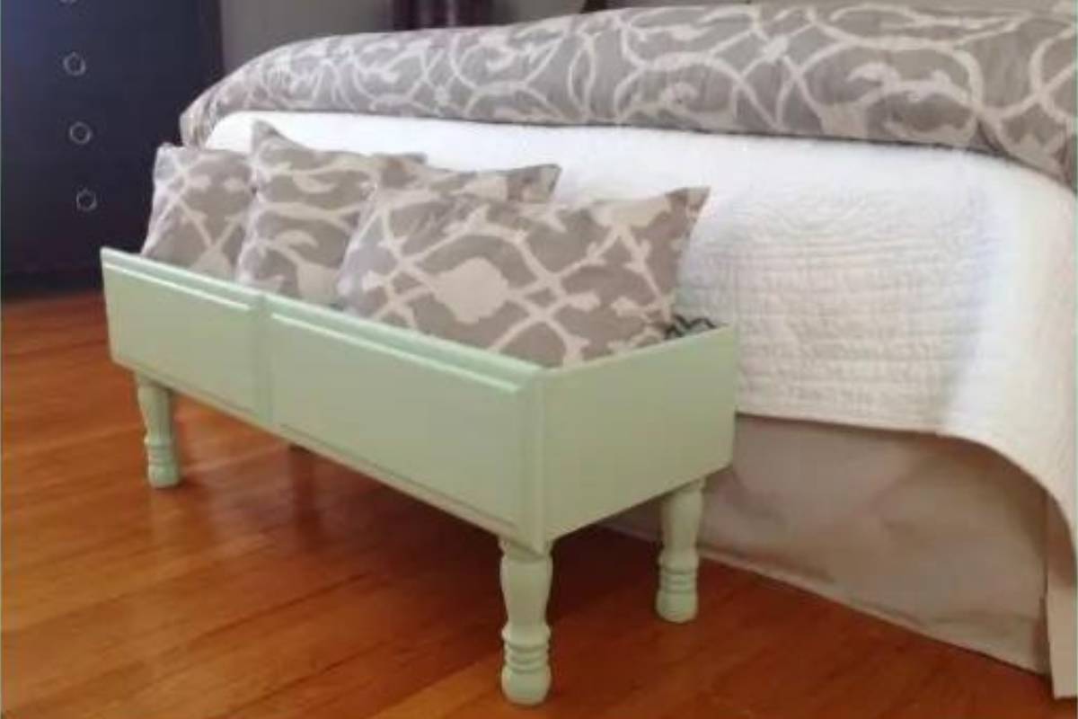 Duas gavetas largas ou uma mais estreita podem se transformar em um prático porta-objetos. Com pés de madeira e uma boa pintura, ela se torna ideal para guardar almofadas, edredons ou até servir como floreira ou sapateira.