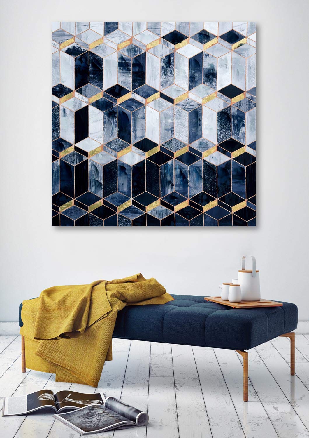 Caso não queira algo que envolva móveis, a estampa geométrica pode ser usada por meio de quadros e pôsteres – e há uma variedade imensa de opções que combinam com seu ambiente e gosto.