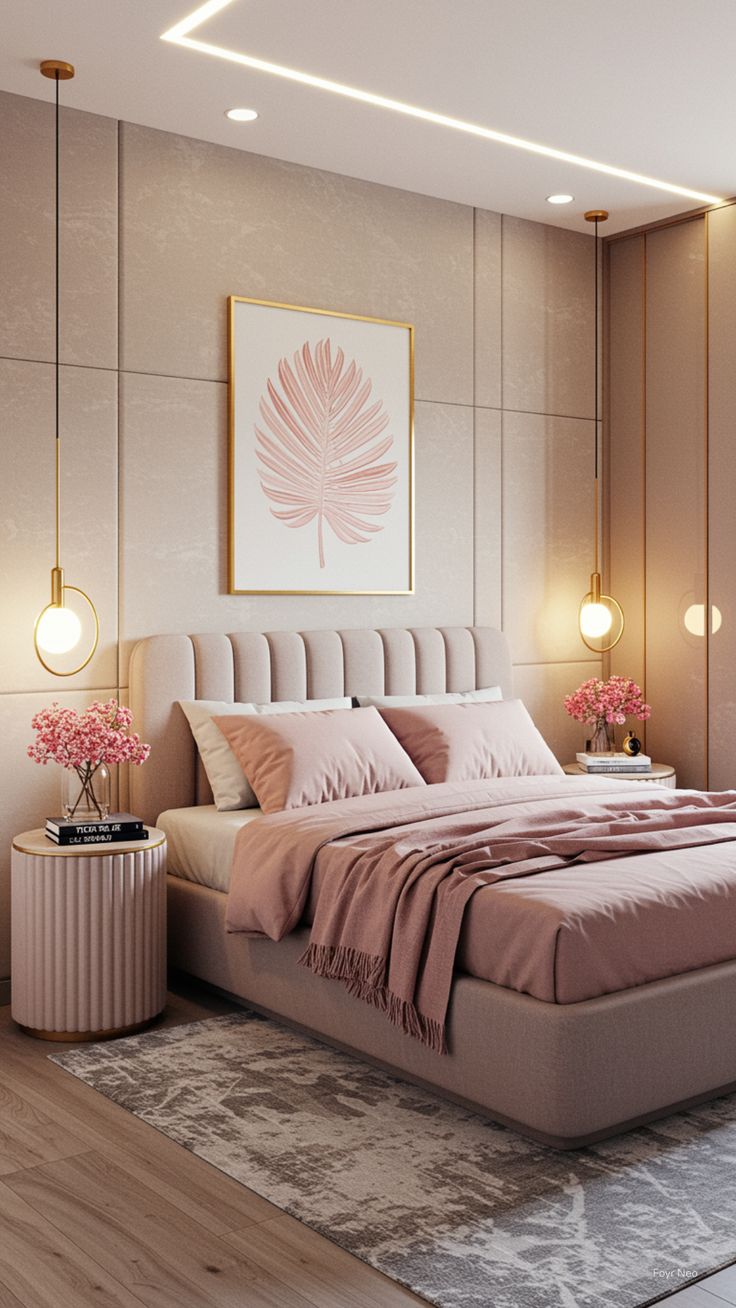 Abajures são clássicos, mas luminárias pendentes trazem um toque contemporâneo e economizam espaço nos criados-mudos. Com lâmpadas LED, elas oferecem uma iluminação direcionada e confortável para leitura, sem iluminar o quarto inteiro.
