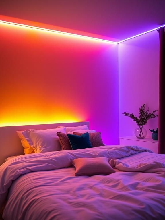 Você pode escolher tons quentes, que deixam o ambiente mais acolhedor, ou variar com cores que combinem com a decoração, como tons pastéis ou até RGB.