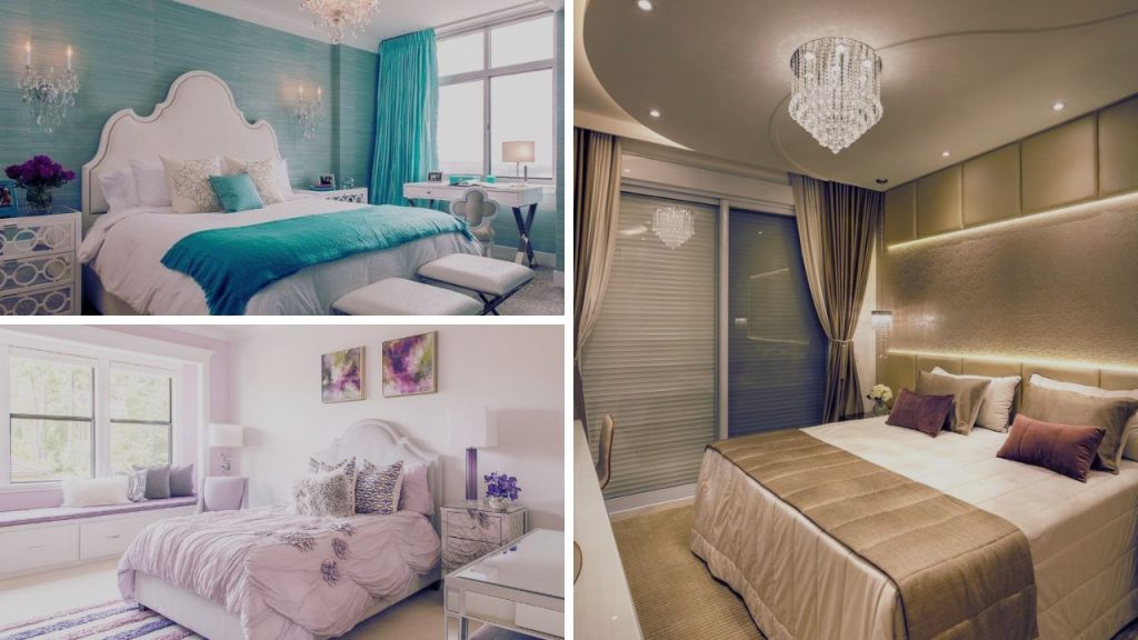 Uma parede em rosa-pálido, por exemplo, harmoniza perfeitamente com cortinas de linho branco e roupas de cama em tons lavanda. Detalhes dourados, como luminárias ou molduras de espelho, são ideais para reforçar o ar sofisticado e romântico.