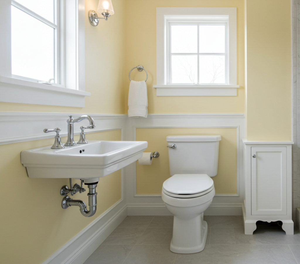 Ao projetar banheiros de metragem reduzida, a paleta de cores deve ser pensada estrategicamente para favorecer a iluminação, criar profundidade e evitar a sobrecarga visual.