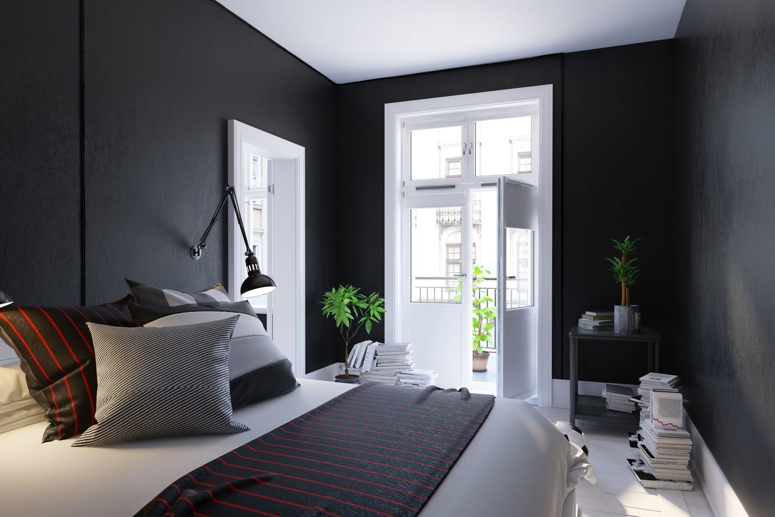 Caso queira ter uma parede preta no quarto, procure pintar apenas uma com essa tonalidade.