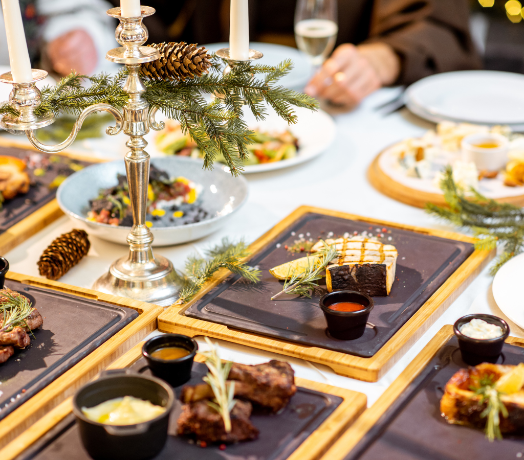 Acrescente toques brilhantes e iluminação abundante para criar um ambiente acolhedor e festivo.