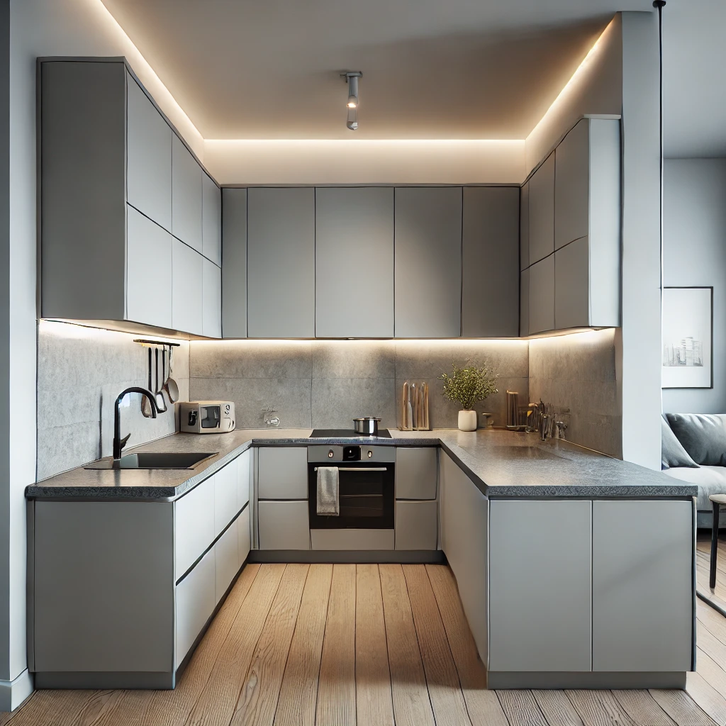 1. Cozinha Minimalista com Bancada de Granito Cinza