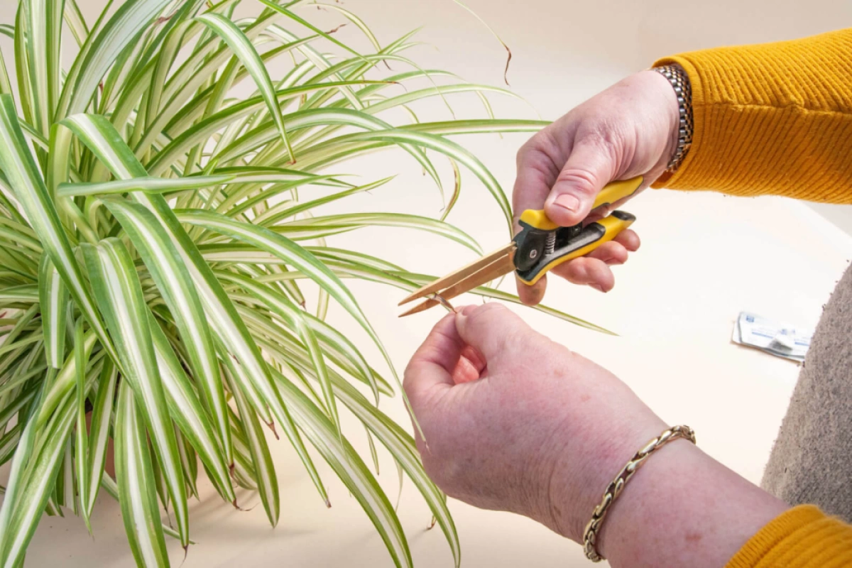 Para realizar a poda, use uma tesoura própria para esse fim, porque ela reduz o risco de danos aos tecidos da planta.