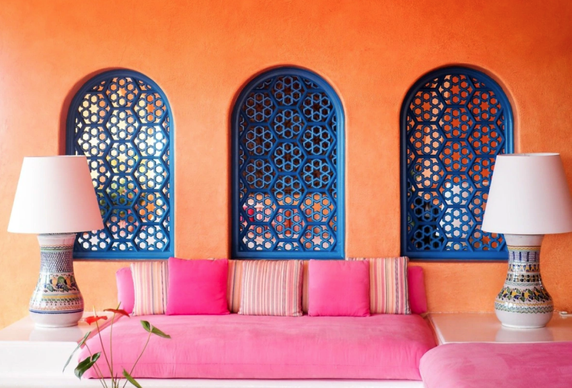 Procure combiná-lo com tons vibrantes quentes, como o vermelho e o laranja, para conseguir um visual típico árabe, bem como um espaço mais acolhedor.