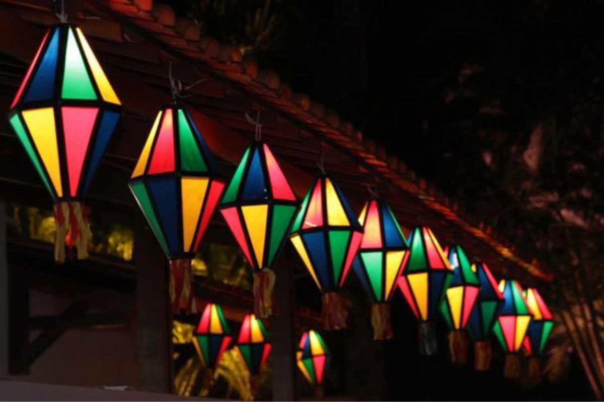 A iluminação é essencial para criar o clima da festa. Invista em cordões de luzes de LED, que podem ser usados para contornar paredes, mesas e até árvores. As luzes em tonalidades amarelas e quentes ajudam a deixar o ambiente aconchegante.