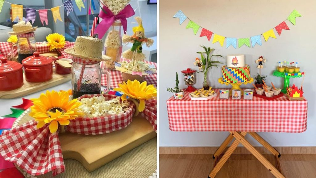 - Toalhas coloridas ou com estampas de chita, que trazem o clima caipira.