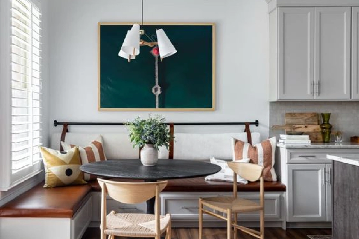 Se estiver precisando de mais espaço para se sentar ou receber visitas, instalar um banco em L no canto é uma boa dica para aproveitar esse espaço de maneira descomplicada. Além disso, tornará a área ainda mais confortável e funcional.