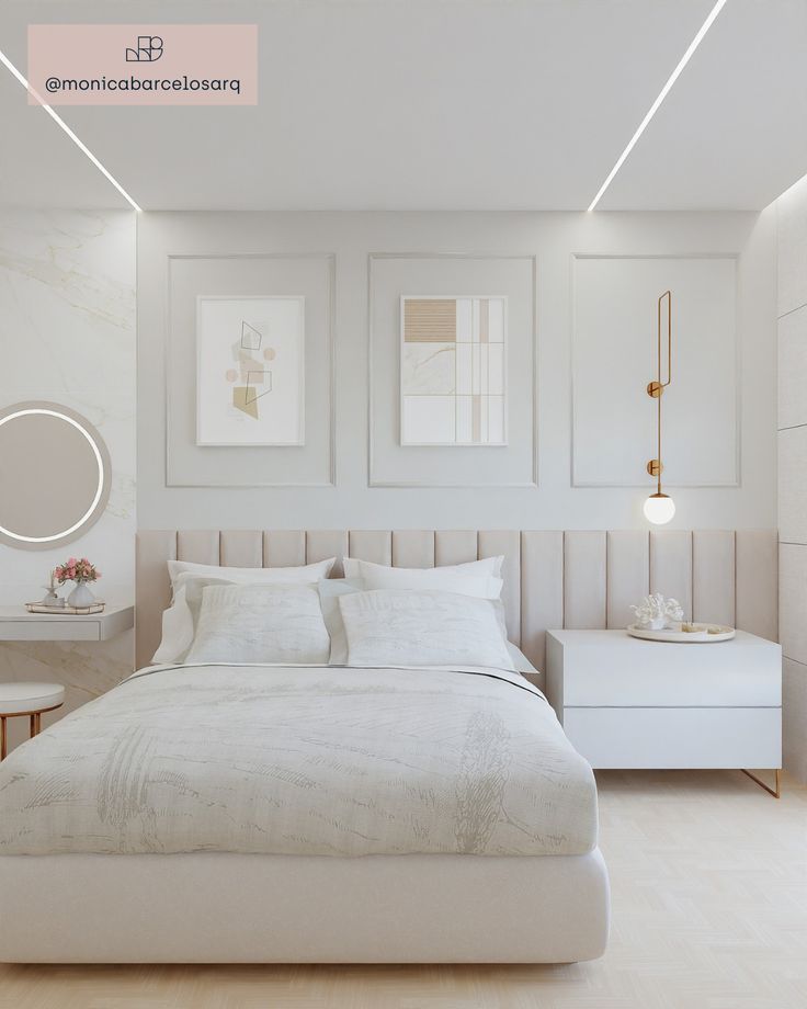 Além de adicionar um elemento decorativo ao quarto, uma cabeceira autocolante pode também proporcionar conforto extra ao encostar na parede. Elas são especialmente úteis em quartos grandes, onde uma cabeceira tradicional grande, poderia demandar um investimento maior.