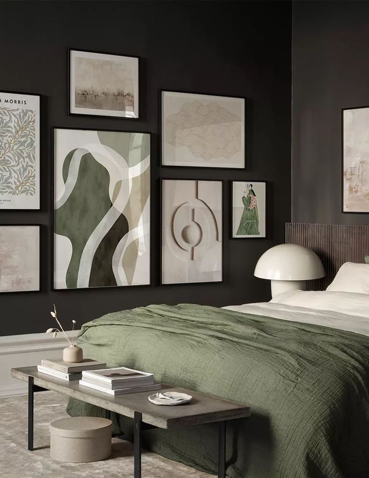 Quadros grandes são excelentes para decorar quartos grandes, pois preenchem as paredes e dão vida ao ambiente. Mas, em vez de investir em obras de arte caras, opte por pôsteres ou impressões que podem ser emolduradas.