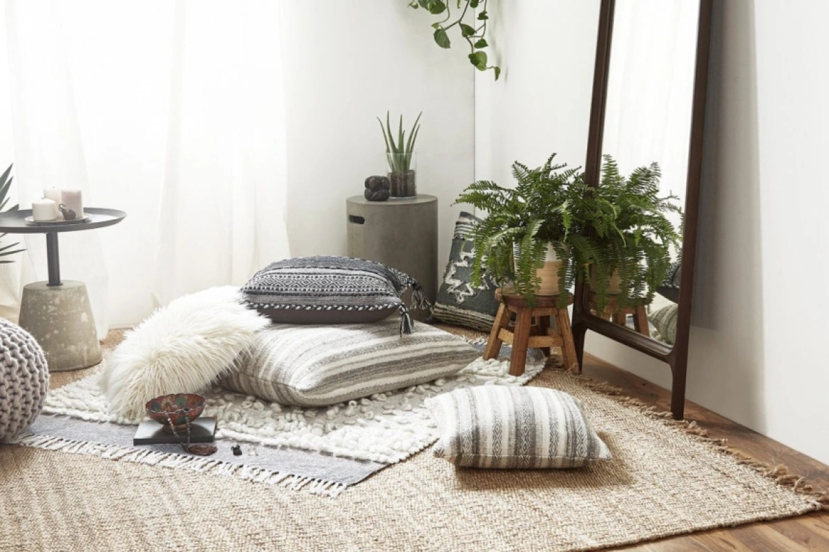 Ao montar a decoração zen, é importante inserir itens que passam sensação de conforto e relaxamento. Entre eles estão as almofadas, tapetes, futons e têxteis que sejam agradáveis ao toque.
