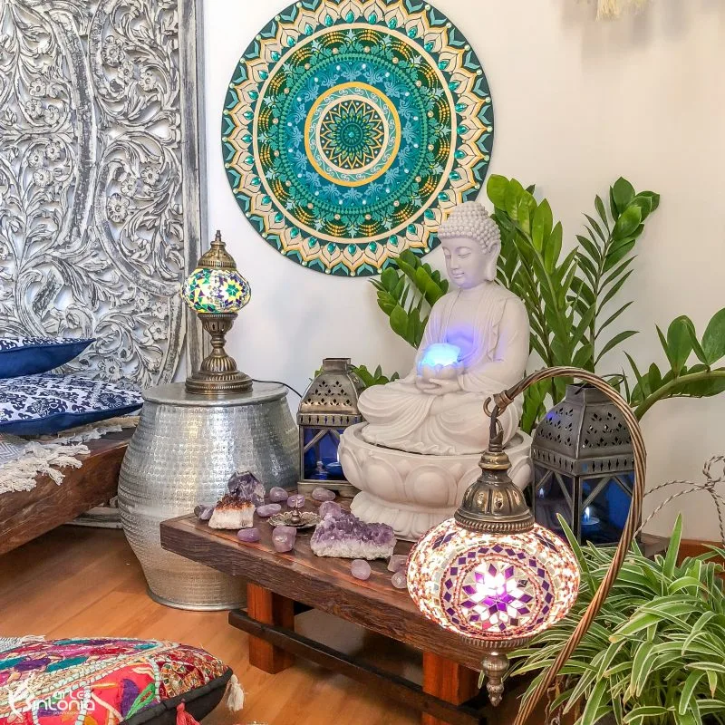 Aposte em cristais de diferentes cores e finalidades, para energizar o espaço e torná-lo ainda mais especial.