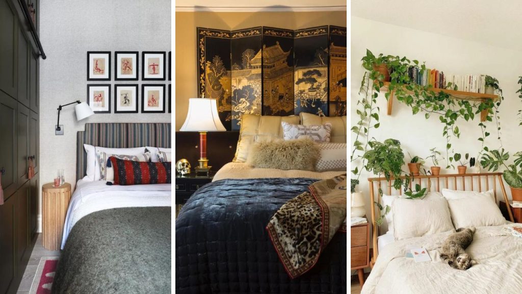 A decoração do espaço sobre a cama, especialmente quando a cabeceira não ocupa toda a parede, é uma excelente oportunidade para criar algo único e expressar estilo.