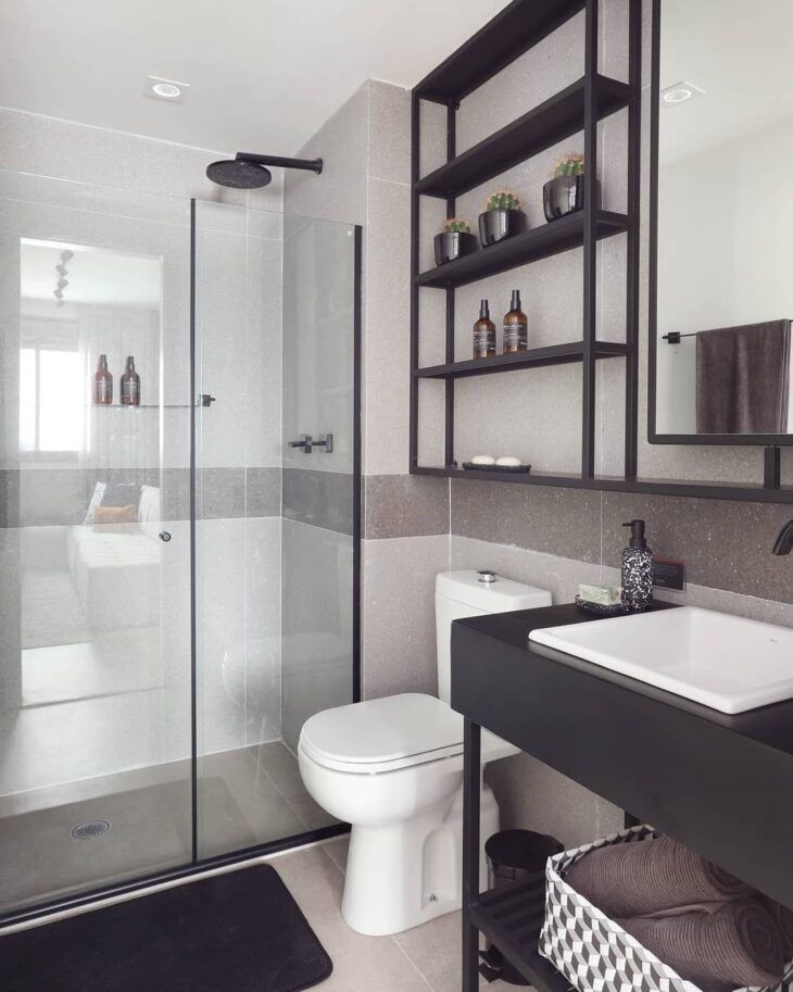 Assim como nas cozinhas, o segredo para um banheiro bem equilibrado está na escolha dos materiais complementares.