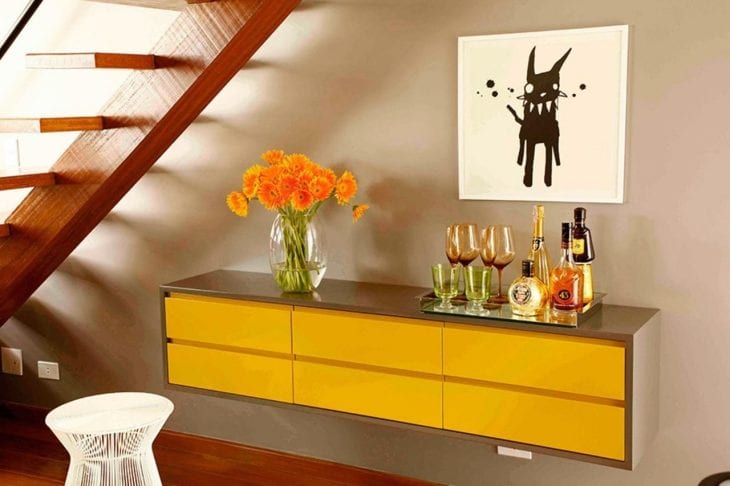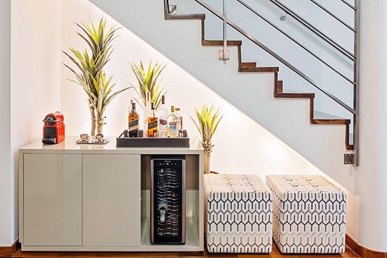 Coloque um aparador/buffet debaixo da escada