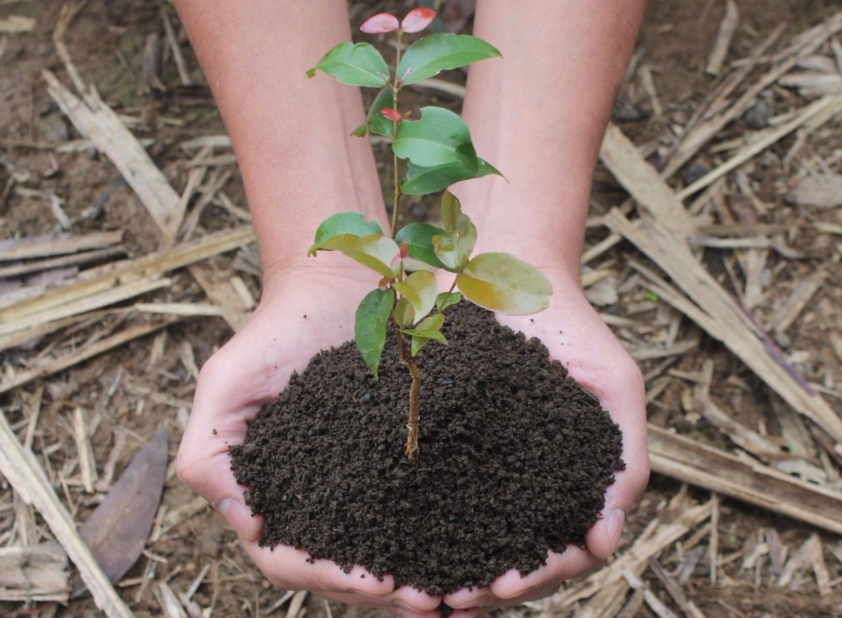pessoa segurando terra nas mãos